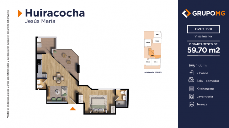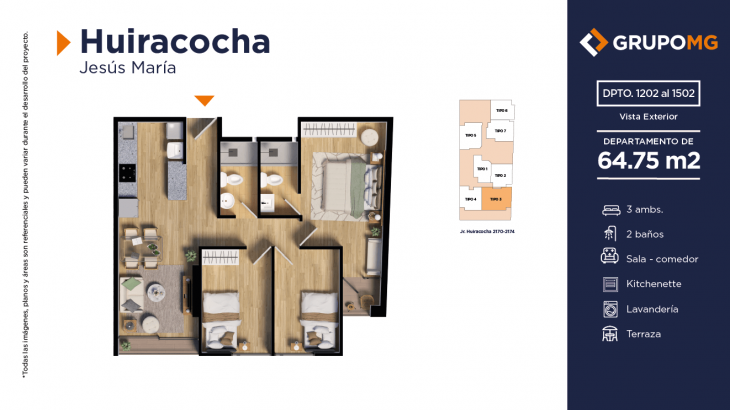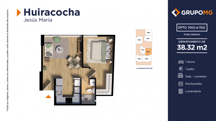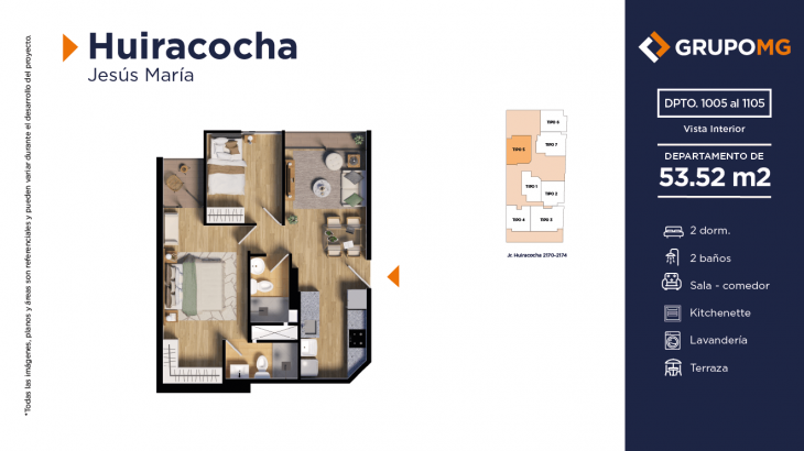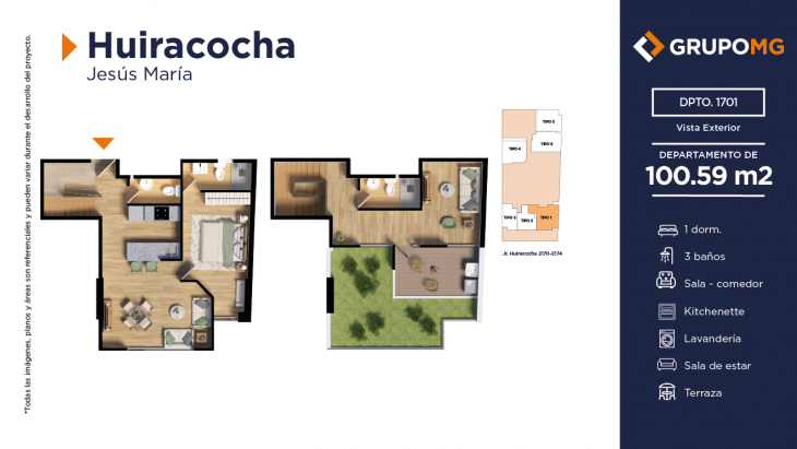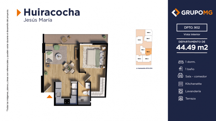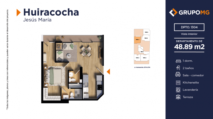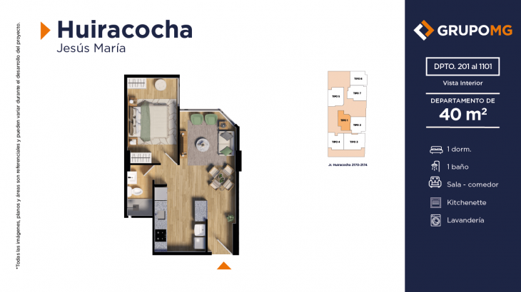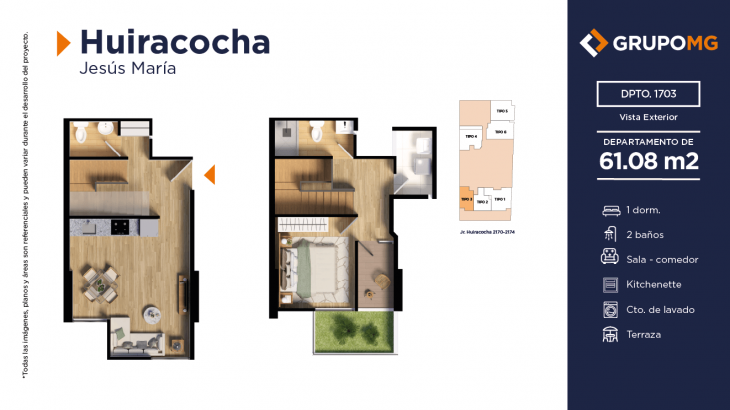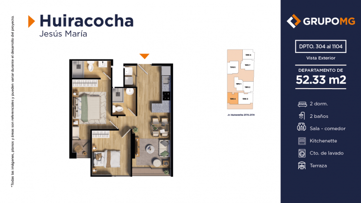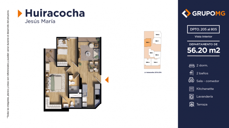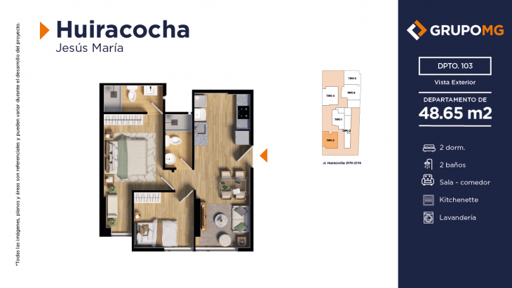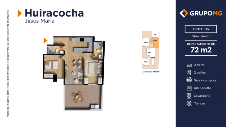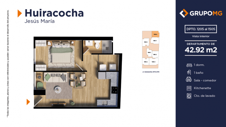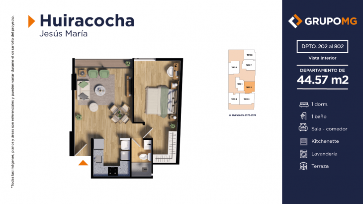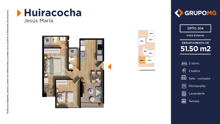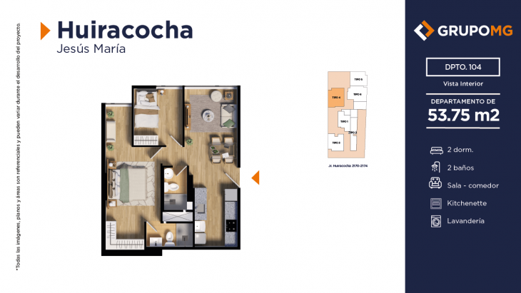 Proyecto exclusivo de tan solo 111 depas, moderna arquitectura, departamentos flat y dúplex con ambientes más confortables en un distrito ideal para quienes buscan un equilibrio entre la vida urbana y la tranquilidad. Excelente ubicación en el centro del distrito de Jesús María, Jr. Huiracocha 2170 – 2174, en un entorno de parques y jardines, centros comerciales, restaurantes, bancos, universidades e instituciones educativas. El desarrollo incluye las áreas comunes recepción, área común central, zona jardín, zona de niños, área de bicicletas, SUM, PetSpa, Gimnasio, Zona de Parrilla, Bar, Estar y Piscina.